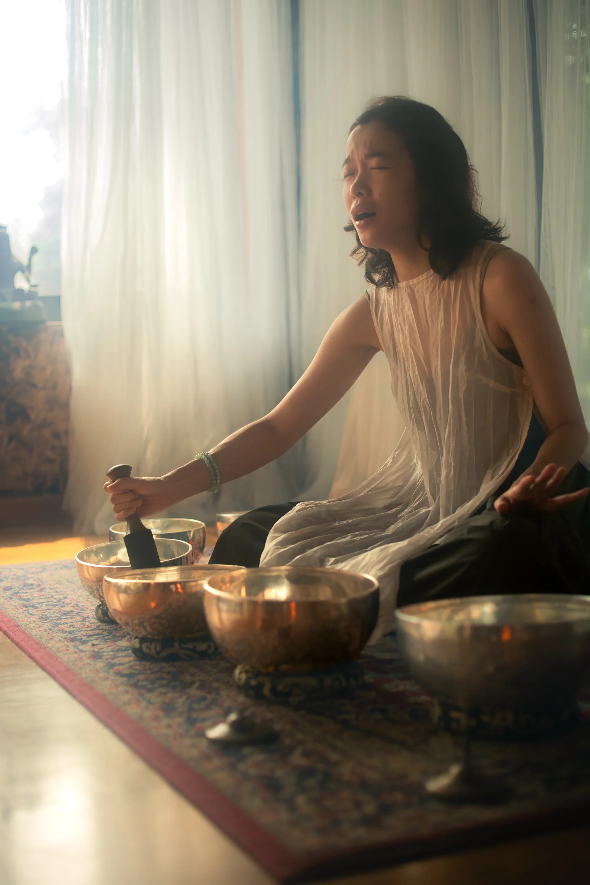 Guided through sound, breath, gentle movement, and ritual, our sessions are designed to support deep presence, nervous-system regulation, and emotional release.